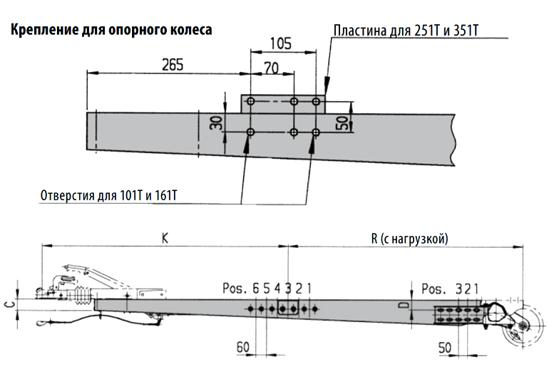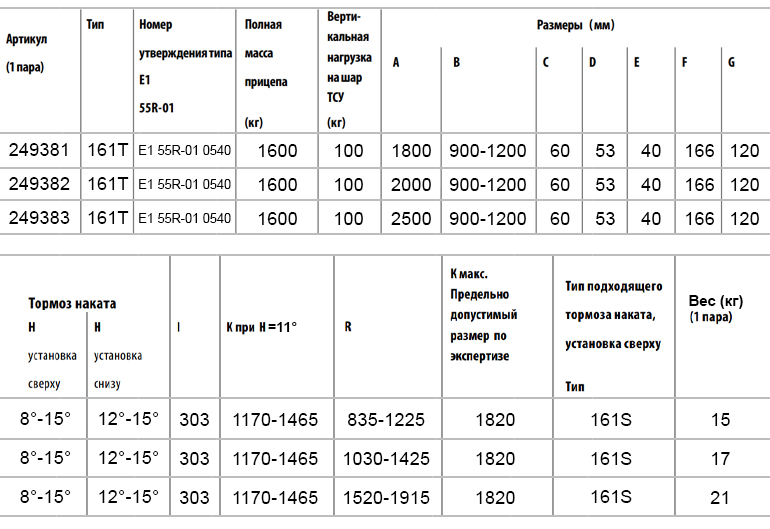 ДЫШЛО V-ОБРАЗНОЕ 161T ДЛЯ ПРИЦЕПА ДО 1600 КГ, А=1800-2500 ММ