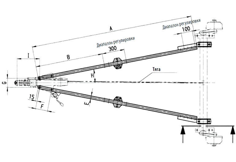 В комплекте дышло (пара) и крепежные к передней поперечине рамы кронштейны.