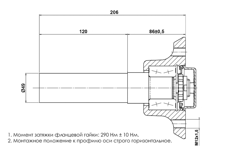 СТУПИЦА В СБОРЕ С ЦАПФОЙ, НАГРУЗКА 650 КГ, 98Х4