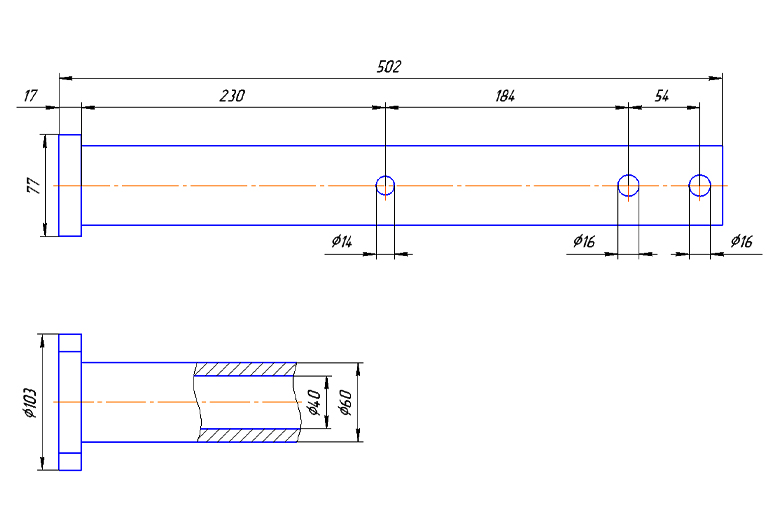 Шток (толкатель) для тормоза наката AL-KO 351VB-2. Наружный диаметр - 60 мм.
